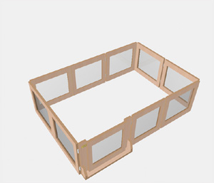 Die 8 Elemente sind jeweils zu zweit mit 1 Klavierband verbunden.