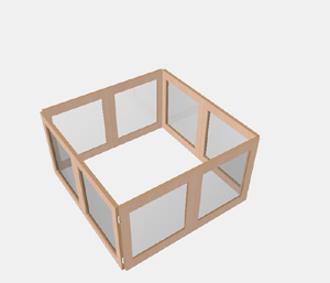 8 Elemente je B:62 x H:70 in 31mm Buche Multiplex. Die 8 Elemente sind jeweils zu zweit mit 1 Klavierband verbunden. Holz: 31mm Höhe: 70cm Gesamtgröße: ~128x128 cm
